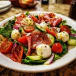 This Antipasto Salad features a vibrant medley of Italian greens, crunchy vegetables, and savory meats, all drizzled with a zesty vinaigrette. Each bite offers a delightful contrast of textures, from the crispness of fresh lettuce to the creaminess of mozzarella, creating a refreshing and satisfying flavor experience.