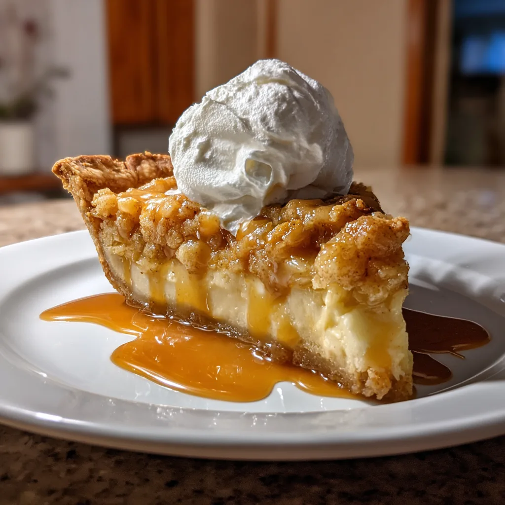 A delicious and indulgent dessert combining the flavors of apple, caramel, and cream in a flaky pie crust.