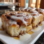 Pop your baking dish into the preheated oven and bake for 25-30 minutes. Keep an eye on it! You’ll know it’s done when the top is golden brown and the cinnamon rolls are puffed up. A toothpick inserted in the center should come out clean.