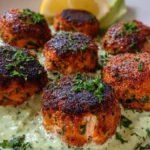 Tender and flavorful baked salmon meatballs paired with a creamy avocado sauce, perfect for any occasion.