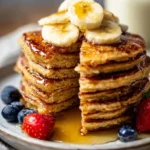 Banana pancakes store beautifully! To keep them fresh in the fridge, stack them in an airtight container with parchment paper between layers. They stay good for up to 3 days. For longer storage, freeze the cooled pancakes in a single layer on a baking sheet, then transfer them to a freezer-safe bag. They will last up to 3 months. To reheat, simply toast them in a toaster oven, warm them in a microwave for quick breakfast, or place them in a hot skillet for a lovely crispy finish.