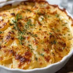 Warm and creamy Au Gratin Potatoes, layered with rich cheeses and garlic, offering a comforting taste experience perfect for gatherings.