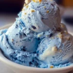Delight in the whimsical flavors of homemade Blue Moon ice cream, a vibrant treat blending vanilla, almond, and citrus for a creamy, nostalgic experience.