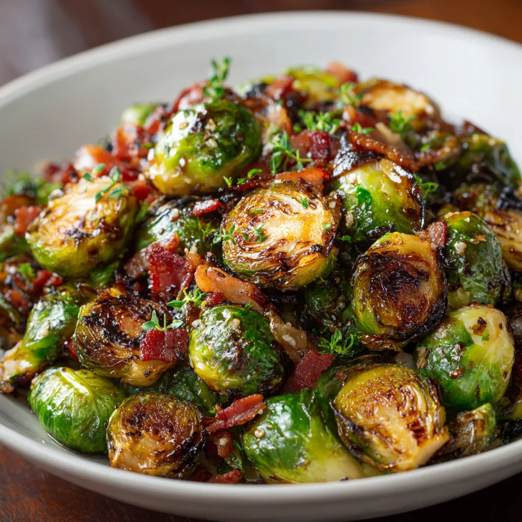Roasted Brussels Sprouts with Bacon and Balsamic Glaze
