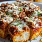Imagine tearing through a golden, bubbling top layer that reveals a lush underbelly of melted cheese and tender meat, ensconced in pockets of crispy garlic bread. Each forkful delights with a crispy crunch from the garlic bread cubes, while the lasagna filling luxuriates in its creamy richness and the zesty tang of marinara. With every bite, you experience a festival of taste—an unshakeable urge to reach for just one more piece. This is not just another lasagna; it’s a delightful culinary embrace that resonates with comfort and joy, making mealtime feel special and shared.