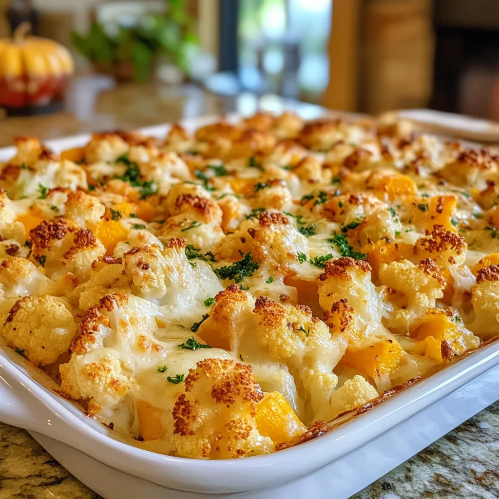 Keywords: Cheesy Roasted Cauliflower, Pumpkin Bake, Vegetarian Dish, Comfort Food