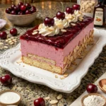 Keywords: Cherry Almond Mousse Cake, mousse cake, cherry dessert, almond flavor, creamy dessert, summer cake, easy cake recipe, gluten-free dessert, cherry puree, whipped cream, baking, American dessert, elegant dessert