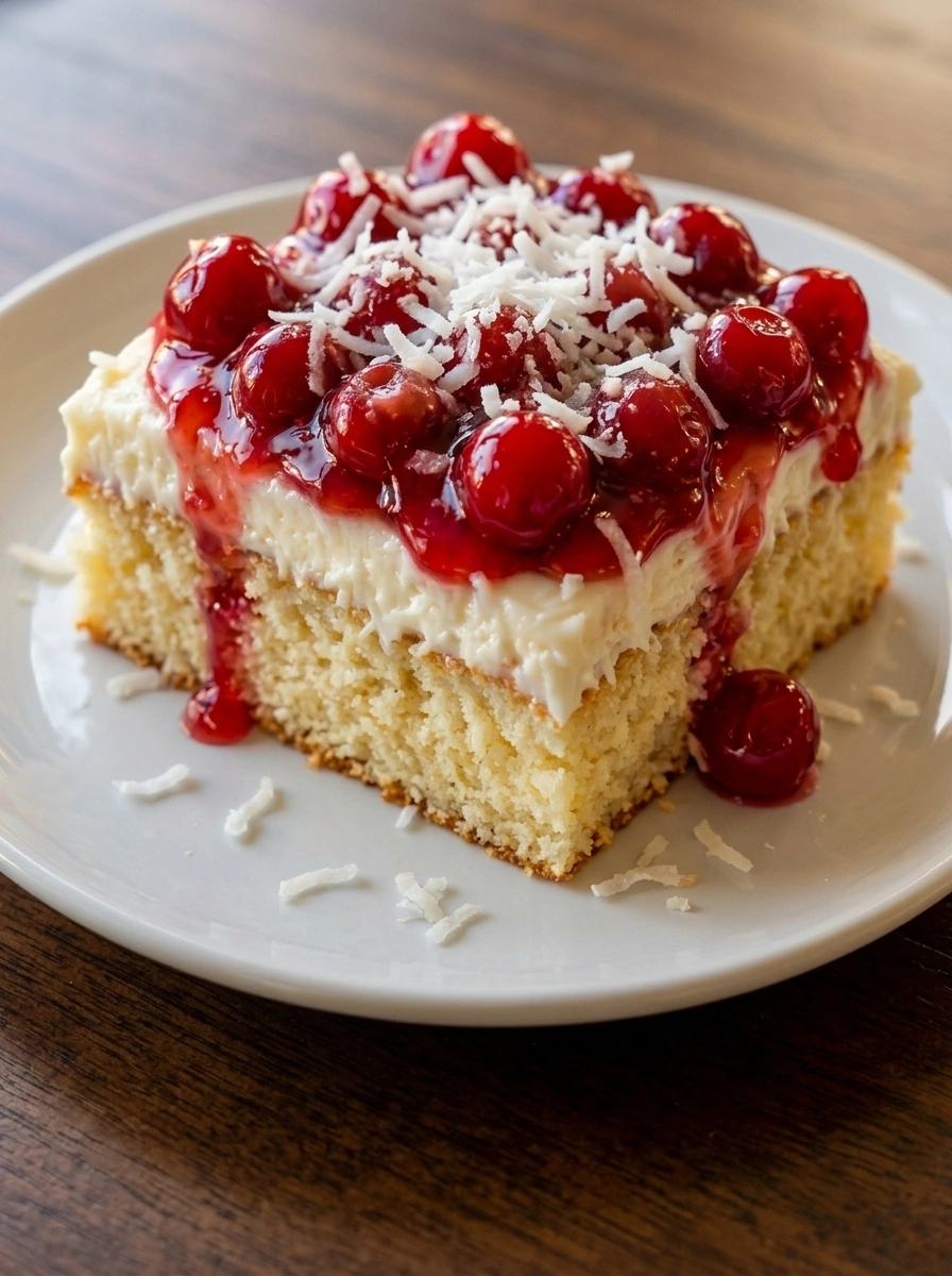 Keywords: Cherry Coconut Sheet Cake, dessert, cake, cherry dessert, coconut cake, sheet cake, easy cake recipe, summer dessert, fruity cake, creamy frosting, homemade cake, baking, sweet treats