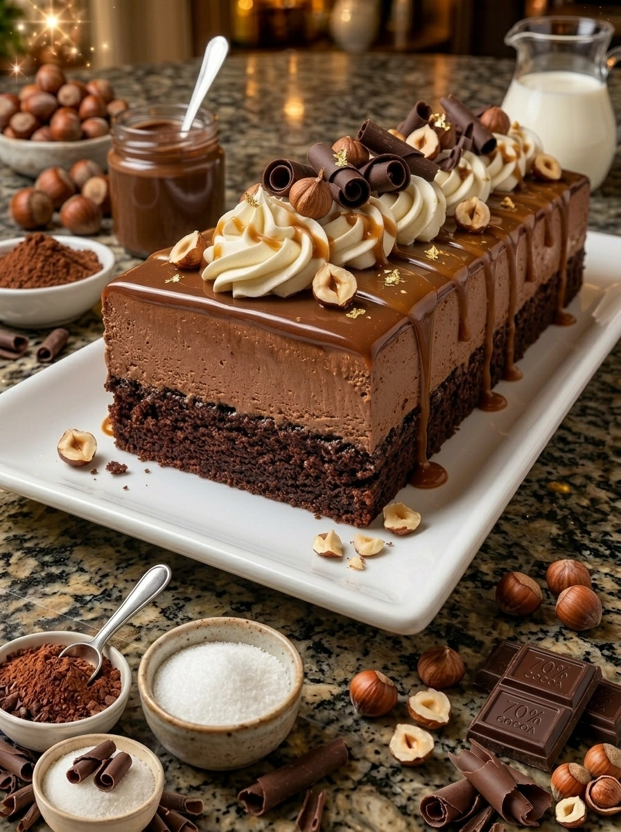 Keywords: Chocolate Hazelnut Mousse Cake, chocolate mousse, hazelnut dessert, rich chocolate cake, creamy mousse, decadent dessert, easy chocolate cake, no-bake mousse, gourmet dessert, holiday cake, vegetarian dessert, indulgent treats, chocolate lovers, hazelnut spread, homemade cake