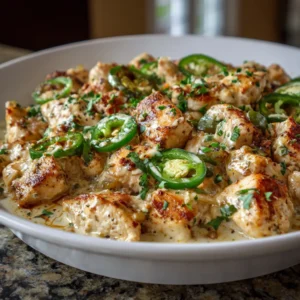 A delicious and creamy mac and cheese dish featuring tender chicken, a hint of honey, and a kick of pepper.