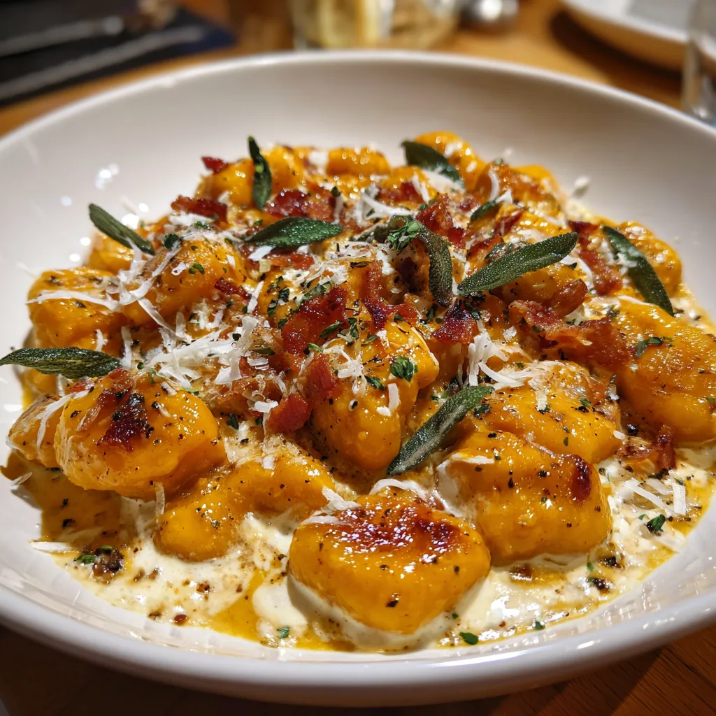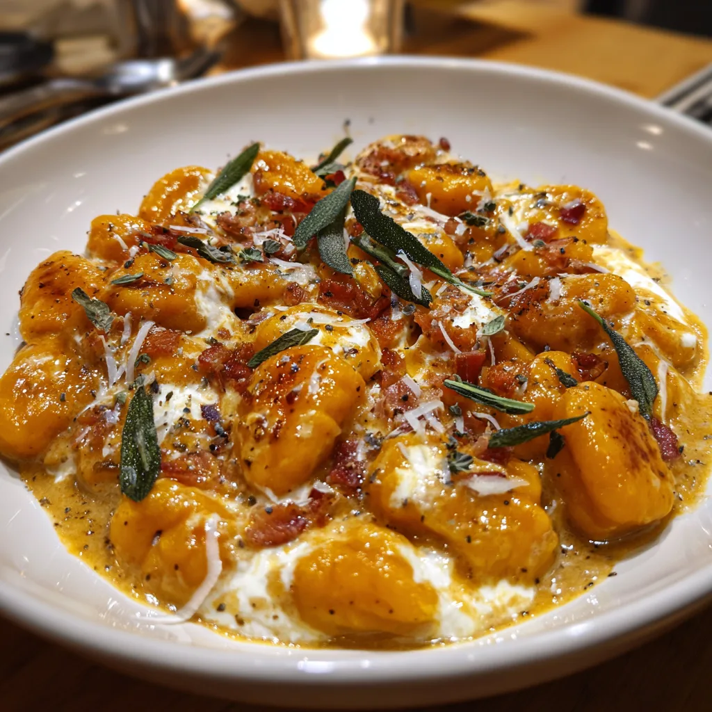A delightful dish featuring soft gnocchi in a creamy pumpkin sauce, perfect for fall.
