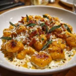 Finally, add the cooked gnocchi to the skillet. Toss them gently in the sauce until they’re well coated. Serve warm, and if you like, sprinkle some extra Parmesan on top for that finishing touch. Your Creamy Pumpkin Gnocchi is now ready to impress! Enjoy every bite of this comforting fall dish.