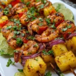 Delightful skewers of shrimp, pineapple, and colorful veggies grilled to perfection, perfect for summer gatherings.