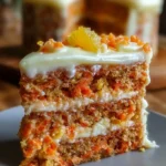 A moist and flavorful cake featuring grated carrots and crushed pineapple, topped with smooth cream cheese frosting and warm spices.