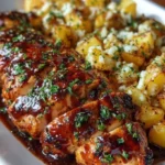Paired alongside creamy Garlic Parmesan Potatoes, the combination lifts an ordinary evening into something extraordinary. The potatoes—golden, crispy on the outside and melt-in-your-mouth soft on the inside—offer a delightful contrast to the succulent chicken. With each forkful, the roasted garlic mingles with rich Parmesan, wrapping your taste buds in a velvety embrace. The harmony of sweet and savory flavors, along with that irresistible crunch and creaminess, leaves you eagerly anticipating the next bite.