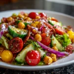 This Italian Chopped Salad bursts with vibrant colors and textures, featuring crisp romaine lettuce, juicy tomatoes, and crunchy cucumbers. Each bite is a refreshing explosion of flavors, enhanced by a zesty vinaigrette that ties all the ingredients together beautifully.