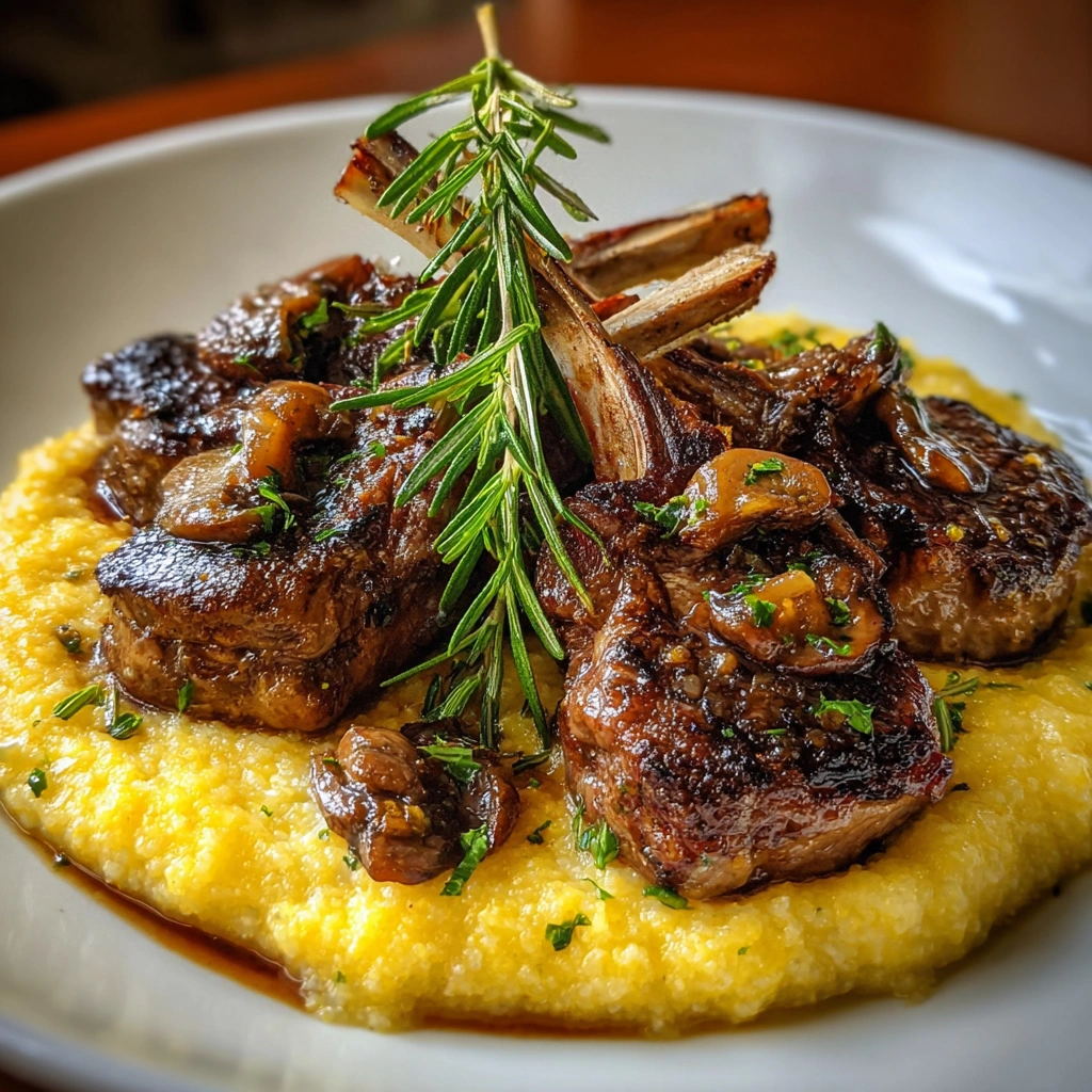 Keywords: Lamb chops, polenta, Mediterranean cuisine, main dish, gluten-free, savory, creamy, dinner recipe, easy lamb recipe, comfort food, seared lamb, gourmet meal, healthy dinner, lamb marinade, polenta recipe