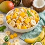 Keywords: Mango Coconut Fruit Salad, tropical fruit salad, healthy salad, summer salad, vegan salad, gluten-free salad, refreshing fruit salad, easy fruit salad, coconut salad, mango recipes, fruit salad recipes, no-cook salad, light dessert, picnic salad, quick salad
