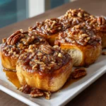 Deliciously sweet and sticky buns topped with maple syrup and crunchy pecans, perfect for breakfast or dessert.