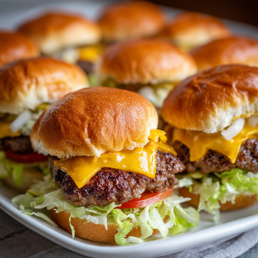 Keywords: Mini Beef Cheeseburgers, sliders, beef patties, cheese, appetizers, grilling, party food, easy recipes, American cuisine, comfort food, quick meals, family-friendly, homemade burgers, mini burgers, savory snacks