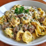 Keywords: One-Pan Beef Alfredo Tortellini, creamy pasta, easy dinner, Italian recipe, beef tortellini, one-pan meal, comfort food, quick recipe, Alfredo sauce, cheese tortellini, weeknight dinner, hearty pasta dish, family-friendly recipe