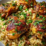 Nothing warms the soul quite like the aroma of a home-cooked meal simmering away on the stovetop, and nothing captures that comforting sensation more beautifully than a rich, one-pot chicken and rice dish. Imagine a tender chicken, its skin glistening and golden, nestled atop fluffy grains of rice, all infused with the savory goodness of chicken broth and fragrant spices. As you stir in the bright green peas at the finish, the colors and scents come alive, inviting you to partake in a culinary experience that feels both homely and special.