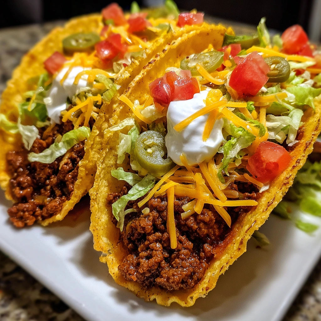 - Texture Contrast: The crispy taco shells provide a delightful crunch that contrasts beautifully with the tender, seasoned meat and creamy cheese.