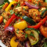 - Assemble: Divide the cooked quinoa among four bowls, building a hearty base. Top with roasted vegetables, sliced chicken, the zesty lemon salad, and indulgent avocado slices. Sprinkle with fresh parsley if desired.