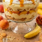 Classic banana pudding is already one of America’s most beloved desserts — that creamy, cookie-studded, Southern staple that shows up at potlucks and family reunions and somehow always disappears before anything else on the table. But what happens when you stir in the flavor of summer’s most iconic fruit? You get Peach Banana Pudding: a dessert so bright, fruity, and irresistibly creamy that it might just replace your current go-to recipe entirely.