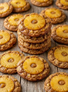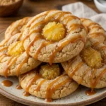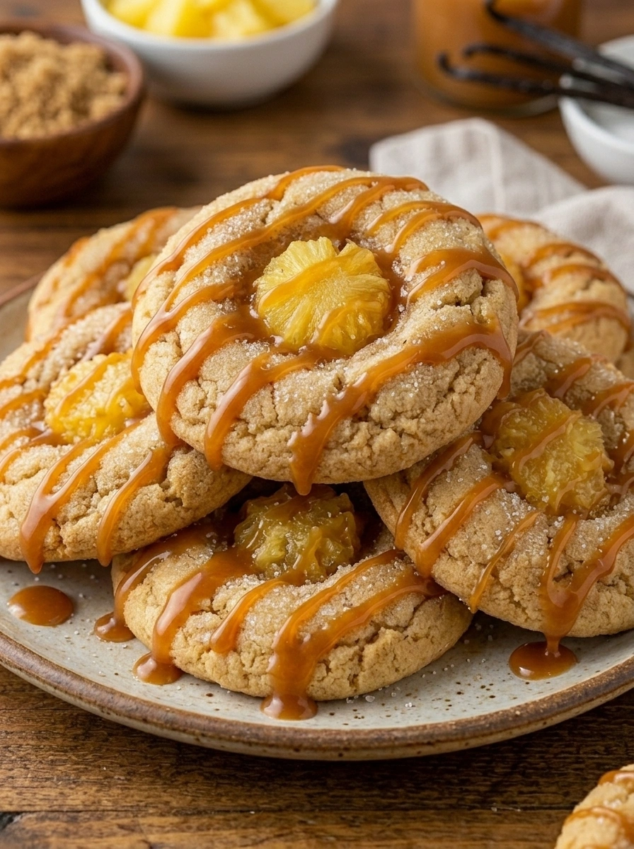 Keywords: Pineapple Caramel Sugar Cookies, tropical cookies, dessert recipes, chewy cookies, pineapple dessert, caramel drizzle, summer treats, easy cookie recipes, baking, sweet treats, vegetarian desserts, homemade cookies, fruit-filled cookies