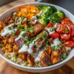 These Ranch Buffalo Chicken Meal-Prep Bowls are a delightful explosion of flavors, featuring crispy, juicy chicken coated in a tangy buffalo sauce. The creamy ranch dressing adds a cooling contrast, while the fresh vegetables provide a satisfying crunch, making each bite a sensory experience.
