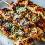 Deliciously marinated chicken skewers infused with ranch seasoning, garlic, and Parmesan cheese, perfect for grilling.