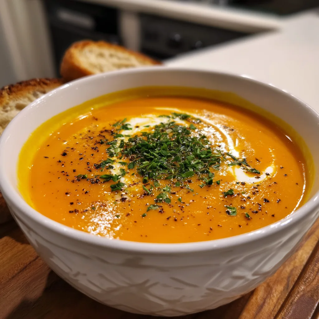 A warm and comforting soup made with roasted carrots, pumpkin, and a hint of ginger, perfect for chilly days.