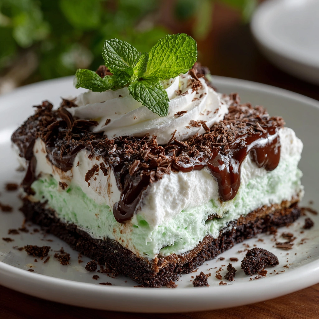 Keywords: Shamrock Shake, Dessert Lasagna, Mint Dessert, No-Bake Dessert, St. Patrick's Day Treat, Creamy Dessert, Chocolate Crust, Layered Dessert, Mint Chocolate, Festive Dessert, Easy Dessert Recipe, Holiday Dessert, Cream Cheese Dessert