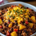 A hearty and comforting casserole made with ground beef, black beans, and mixed vegetables, all slow-cooked to perfection.