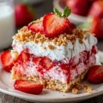 Keywords: Strawberry Crunch Poke Cake, strawberry dessert, poke cake, summer cake, easy cake recipe, vanilla cake, strawberry gelatin, whipped topping, party dessert, refreshing cake, homemade cake, fruity dessert