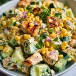 The balance of textures is almost magical. You experience the tender, juicy chicken that melts in your mouth alongside crisp cucumbers and sweet corn. This salad brings refreshing brightness with a hint of zest from lime juice, while cilantro adds an aromatic finish that makes every bite feel like a warm embrace. Not only is it delicious, but it also carries the nutritional benefits of lean protein, fresh vegetables, and healthy fats from yogurt and mayonnaise.