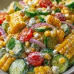 The sun blazes overhead, casting a warm golden hue over your backyard as you gather with friends and family. The air fills with laughter, the sizzling sounds of grilling, and the tantalizing aroma of summer’s best offerings. Amidst this vibrant atmosphere, you unveil a dish that captures the essence of the season—Street Corn Creamy Cucumber Salad. Bright, fresh, and utterly delightful, this salad brings together the sweetness of corn, the crunch of cucumber, and the creamy richness that wraps everything into a harmonious embrace. It’s a celebration for the taste buds, a refreshing companion to any summer gathering.