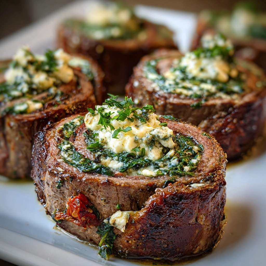Keywords: Stuffed steak pinwheels, flank steak, pinwheel recipes, savory appetizers, beef recipes, easy dinner ideas, marinated steak, cheese stuffed steak, baked pinwheels, party food, gluten-free recipes, Italian-inspired dishes, quick meals