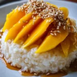 When you’re ready to serve, place a generous portion of the sticky rice on a clean plate. Top it with fresh mango slices, drizzle with the reserved coconut sauce, and finish with a sprinkling of sesame seeds or mung beans for that extra crunch.