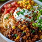 Present your Taco Rice Bowls while they’re still hot, inviting everyone to dig right in!