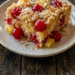 Keywords: Tropical Cherry Coconut Dump Cake, cherry dump cake, coconut dessert, easy cake recipe, tropical flavors, summer dessert, gooey cake, quick dessert, baking, fruit cake, coconut milk, yellow cake mix