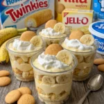 Keywords: Twinkie Banana Pudding Cups, banana pudding, dessert cups, no-bake dessert, Hostess Twinkies, banana cream pudding, easy dessert, party dessert, layered dessert, nostalgic treats, creamy dessert, quick dessert, summer dessert, kid-friendly dessert
